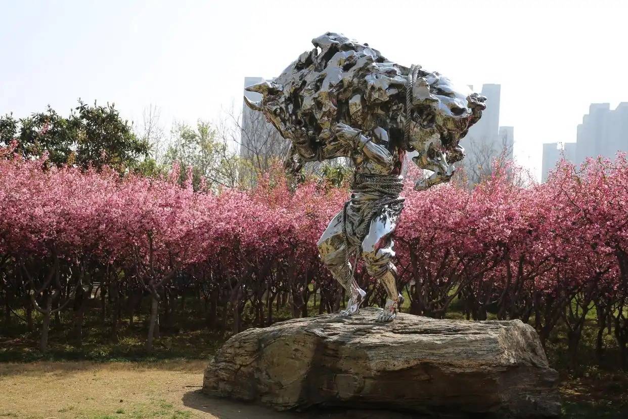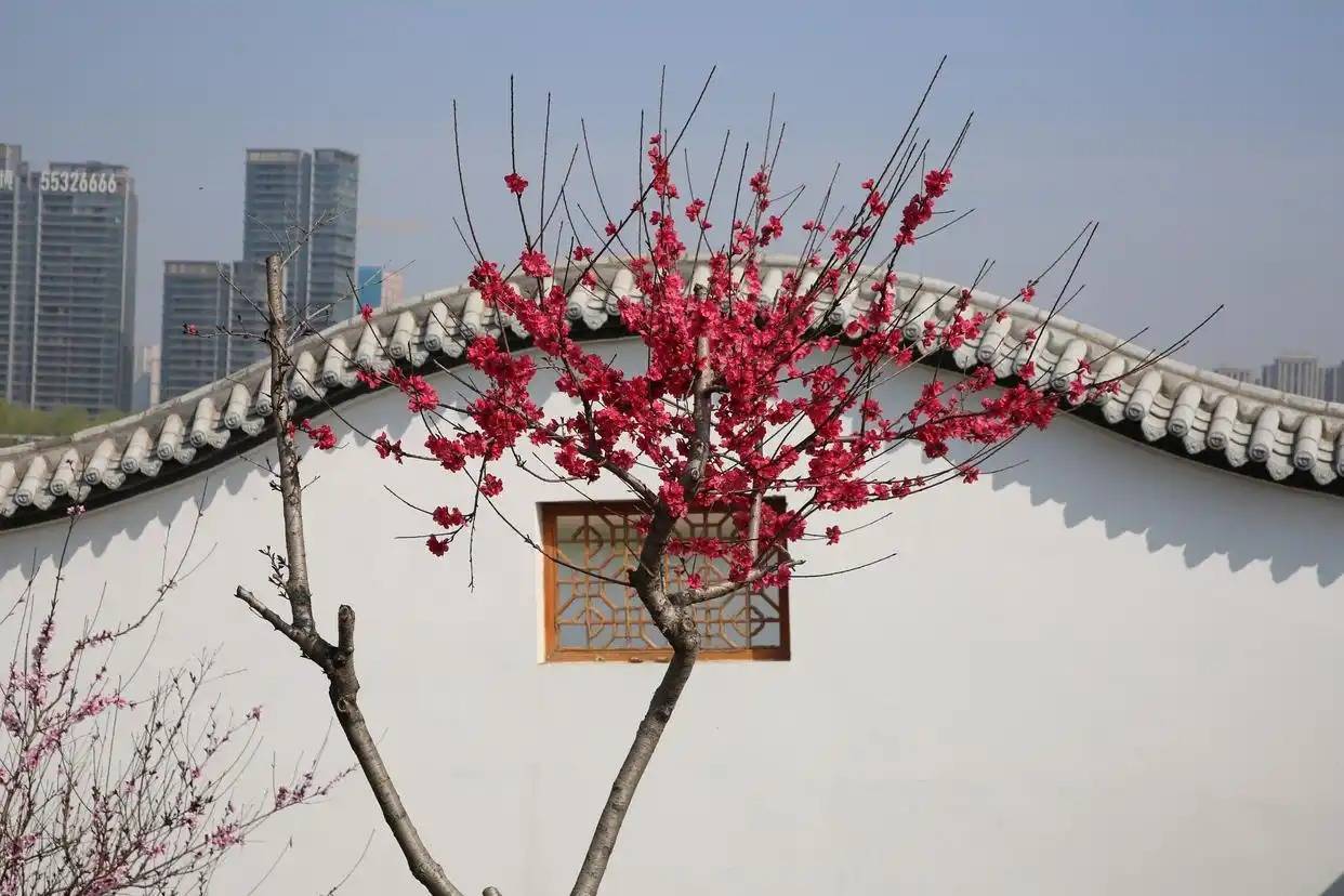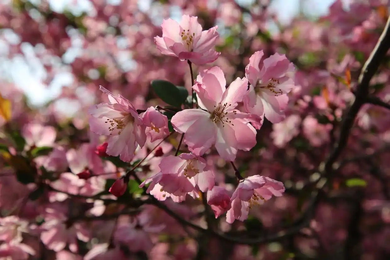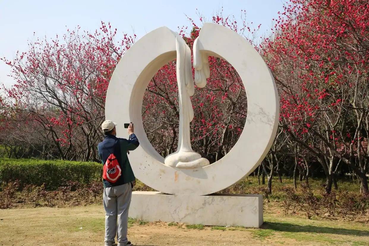 走进雕塑公园,东环路、西环路两侧早已被花海铺满,成为春日里最亮眼的风景线。垂丝海棠、西府海棠、红宝石海棠等十余种、3000余棵海棠花竞相绽放,粉的似霞、红的如火,繁花满树,尽显娇艳与妖娆。湖东,1000余株美人梅也同样不甘示弱,争奇斗艳,粉嫩的花瓣与碧波荡漾的湖水相映成趣,更添一份妩媚风姿。除此之外,淡紫色的紫荆、丁香点缀,如繁星般绚烂,共同书写着春日独有的浪漫诗篇。