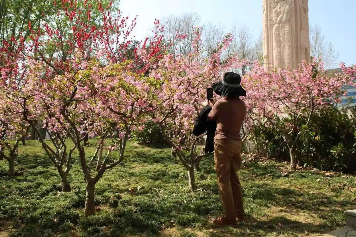 如果说雕塑公园的花海给人以铺天盖地的震撼,那么五一公园则呈现出一派花与人和谐相融的生动景象。美人梅、榆叶梅、紫叶李、海棠、碧桃等各色花木,错落有致、簇拥绽放,将公园装扮得生机盎然。前来赏春的市民络绎不绝,大家或驻足观花、拍照留念,或漫步花丛、休闲健身,孩子们在花下嬉戏打闹,老人们在花旁闲谈小憩,欢声笑语与缤纷花影交织,勾勒出一幅生动和美的“人面春花相映趣”的城市春景图。